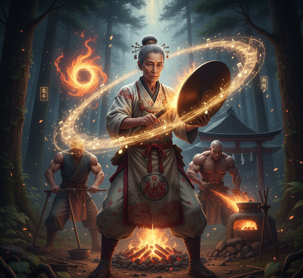 石凝姥(イシコリドメ)は三種の神器のひとつとして知られている「八咫鏡(やたのかがみ)」を作った神で、金属加工の神として崇められています。また、この神は女神ですが多くの場合、老婆の姿で描かれています。
