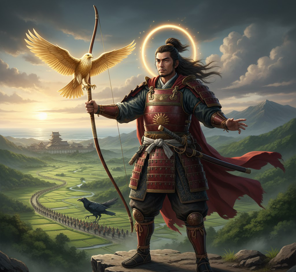 この神武東征においては数々の有名なエピソードが存在し、中でも最大の難敵であったナガスネヒコの率いる軍勢との戦いにおいて苦戦を強いられていた際に神武天皇の持っていた弓に天空から舞い降りてきた一羽の鵄(とび)が止まると雷光のように激しく輝きだし、敵軍の目をくらまし戦意を喪失させたというものです。