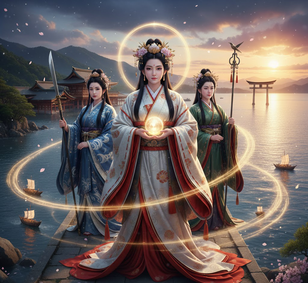 宗像三女神(ムナカタサンジョシン)は福岡県の宗像大社や広島県の厳島神社などに祀られている事で広く知られている女神で、宗像三女神という名は1柱の女神を指すのではなく、「タギツヒメ」「イチキシマヒメ」「タゴリヒメ」の3姉妹の女神を総称して宗像三女神と呼ばれています。